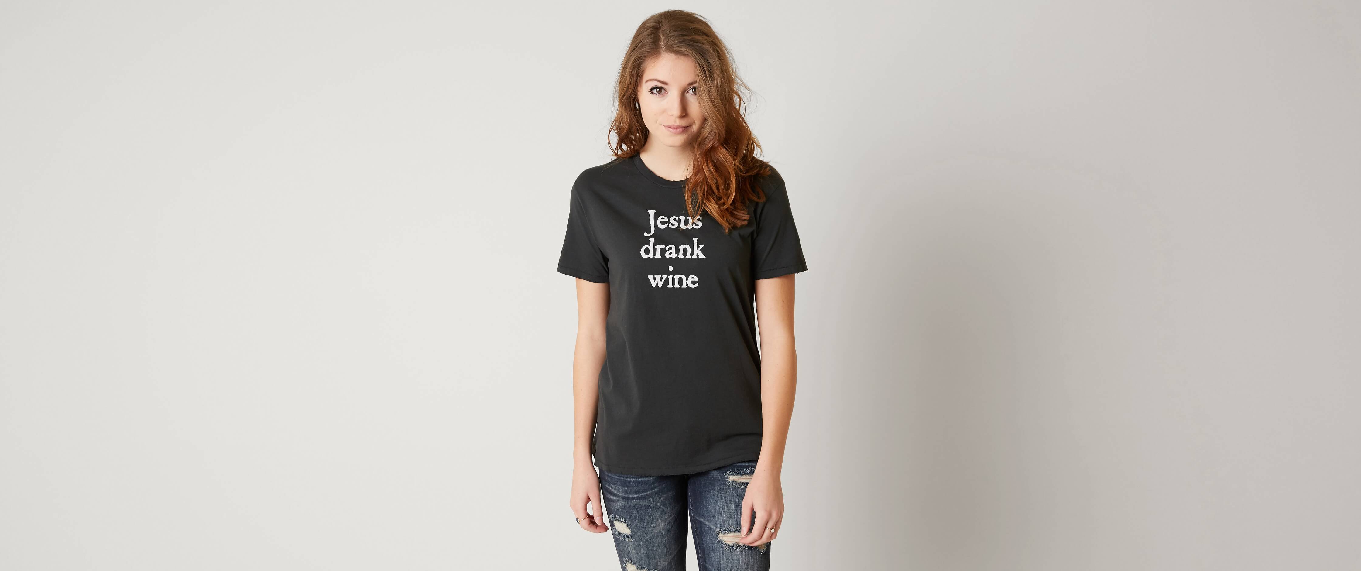 The Light Blonde Jesus Drank Wine T Shirt Women S T Shirts In Distressed Black Buckle
